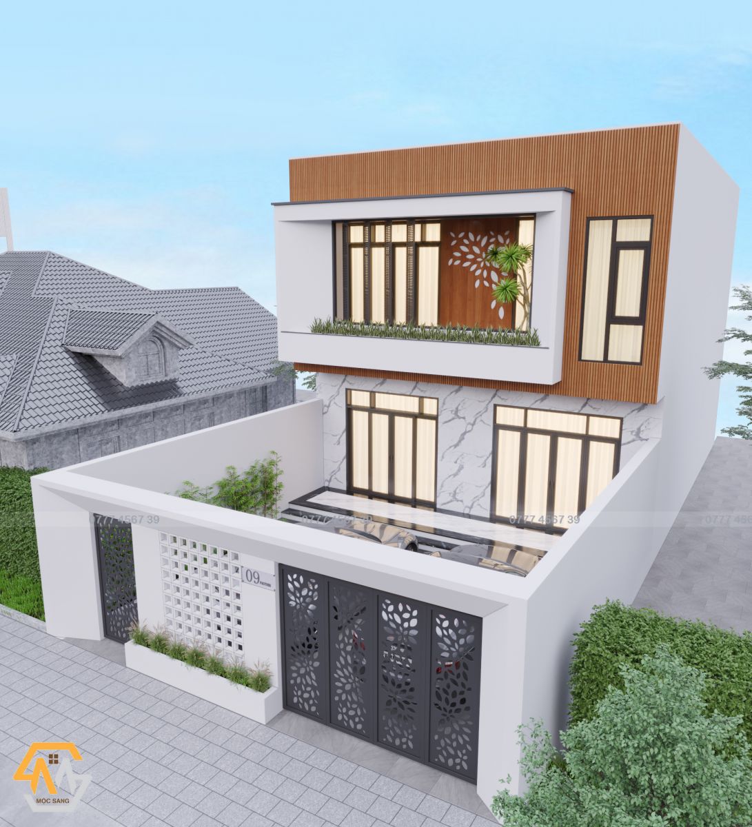 nhà phố anh cường ( phong cách tk hiện đại) đất 8x20 diện tich sàn 200m2 - t1: khách bếp wc ,1 ngủ - t2 1 shc, 1 giặt phơi, 2 wc - 2 ngủ