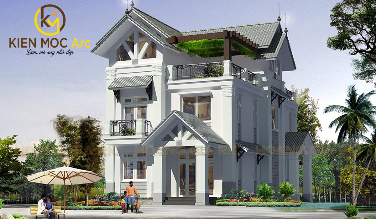 Mẫu nhà biệt thự 3 tầng 5 phòng ngủ mái thái đầy sang trọng
