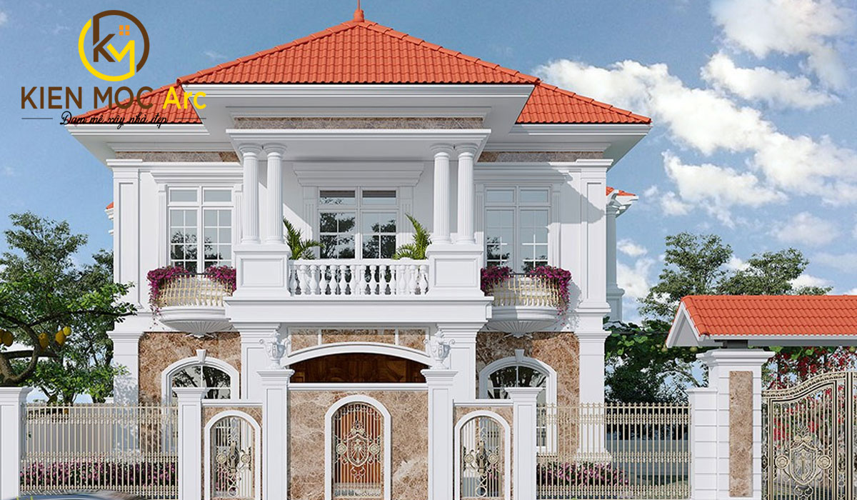 Mẫu thiết kế biệt thự tân cổ điển mái thái 2 tầng giá rẻ