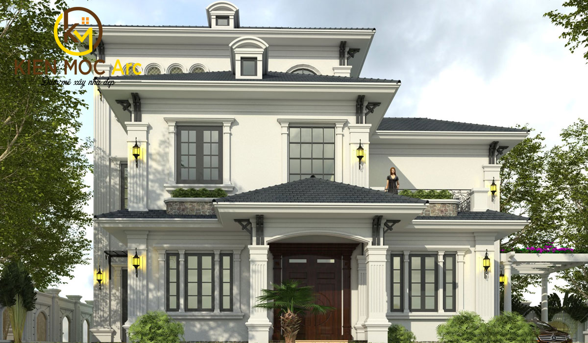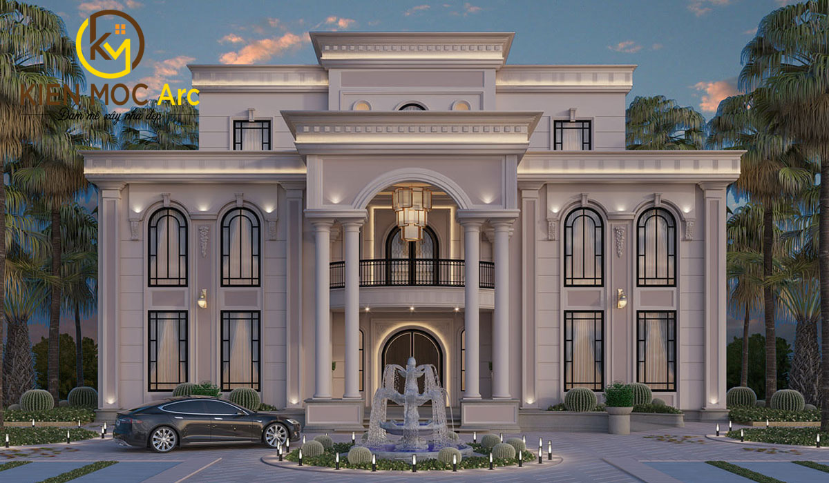 Thiết kế nhà biệt thự theo phong cách tân cổ điển 3 tầng bề thế và hoành tráng